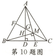 10. 如图,AD,CF 分别是$\triangle ABC$的高和角平分线,AD 与 CF 相交于点 G,AE 平分$∠CAD$交 BC于点 E,交 CF 于点 M,连接 BM 交 AD 于点 H,且$BM⊥AE$. 有下列结论:①$∠AMC=135^{\circ }$;②$\triangle AMH\cong \triangle BME$;③$AH+CE=AC$;④$BM+MH=BC$. 其中,正确的结论是(