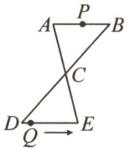 15. 如图,$AB// DE$,AE 与 BD 相交于点 C,$AC=EC,AB=8 cm$,点 P 从点 A 出发,沿$A→B→A$方向以 3 cm/s 的速度运动,同时点 Q 从点 D 出发,沿$D→E$方向以 1 cm/s 的速度运动,当点 P 回到点 A 时,P,Q 两点同时停止运动. 连接 PQ,当线段 PQ 经过点 C 时,点 P 的运动时间为