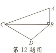 12. 如图,$AB\perp BC$,$\angle ACB = 20^{\circ}$,$\angle CBD = 40^{\circ}$,$AC = 4$,$BD = 2$,则$\angle BCD =$