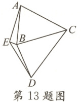 13. 如图,线段$AB$,$DE$的垂直平分线交于点$C$,且$\angle ABC = \angle EDC = 68^{\circ}$,$\angle AEB = 94^{\circ}$,则$\angle EBD$的度数为