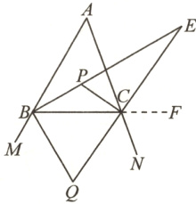 ∴∠QBC + ∠QCB=$\frac{1}{2}(∠MBC + ∠NCB)=\frac{1}{2}(360° - ∠ABC - ∠ACB)=\frac{1}{2}(180° + ∠A)=90° + \frac{1}{2}∠A$,