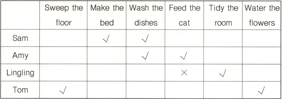 )3. Lingling can tidy the room but can't feed the cat.(