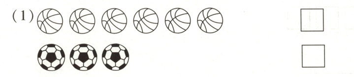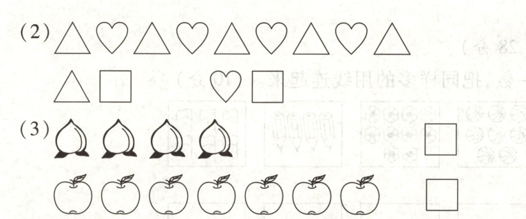 (2)题通过准确数出不同图形的数量,再进行大小比较,在数量多的物品后面画“√”。