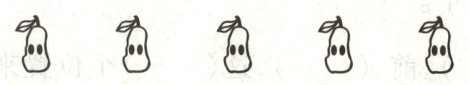 2. 每个小朋友吃一个梨子,这是他们吃完后剩下的梨子核。用一个“△”代表一个小朋友,在下面的横线上画出小朋友的数量。