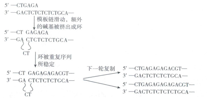 4. 【2026湖北武汉九师联盟考试】DNA复制时其中一条链发生滑动,导致部分碱基被挤出成环从而引起基因突变,突变过程如图所示。下列叙述错误的是