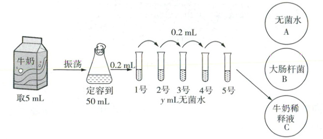 A.若图中牛奶稀释液在每支试管中的稀释倍数与定容时相同,则y应为0.8