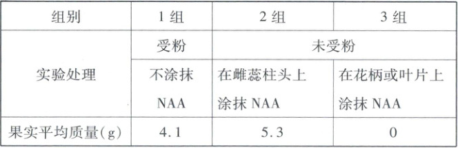 7. 为研究生长素类调节剂(NAA)对番茄子房发育成果实的调节作用,科研人员将处于花蕾期的番茄花分成4组进行实验,实验处理及结果如表。下列相关叙述错误的是