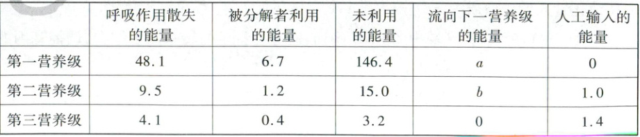 15. 科研人员对某草原生态系统的能量流动进行定量分析,数据如表所示,能量单位为J·cm⁻²·a⁻¹,能量值a、b未知。下列叙述错误的是