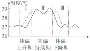 Ⅱ为高温持续期,体温维持在较高水平且相对稳定,说明此时患者体内产热与散热达到动态平衡,C正确;