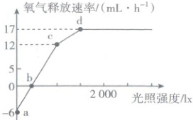 (3)研究小组进一步在不同光照强度下检测棉花叶肉细胞的氧气释放速率,如图所示。若该植物一天24h处于b点对应的光照强度,该植物有机物的积累情况是