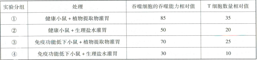 8. 为探究某种植物提取物对小鼠免疫功能的影响,研究人员进行了相关实验,实验处理及结果如表所示。下列叙述错误的是
