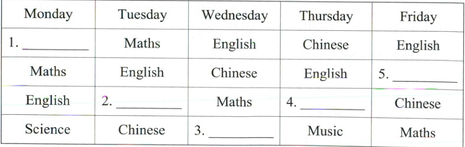 (二)1. Chinese 2. Computer 3. Art 4. Science 5. PE