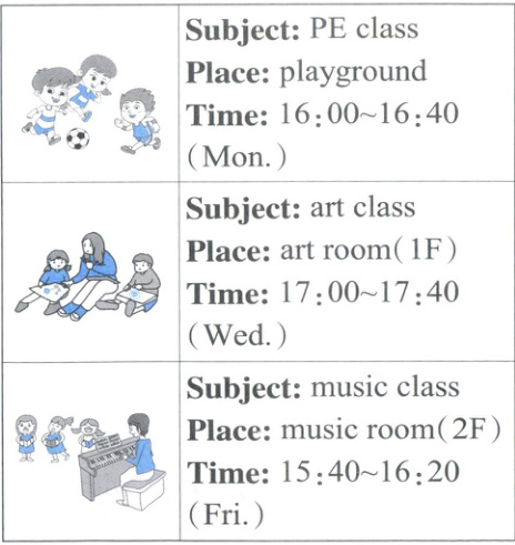 四、新情境课外活动看 Alice 学校的课外活动安排表,判断句子正(T)误(F)。