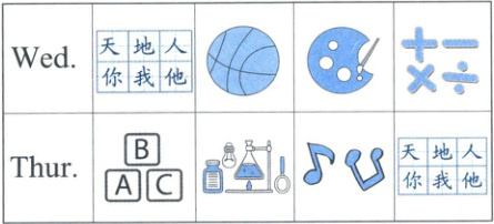 二、下面是 Mary 星期三和星期四学校的课程。圈出相符的句子序号。