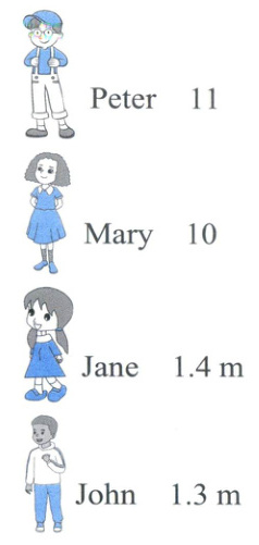 一、体育课上,同学们在测量身高。看图,圈出与图片相符的句子的序号。