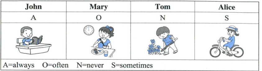 )4. After school, Mike ______ plays basketball with his friends.A. often