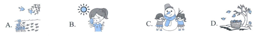 二、1. C winter 2. B summer 3. D autumn 4. A spring