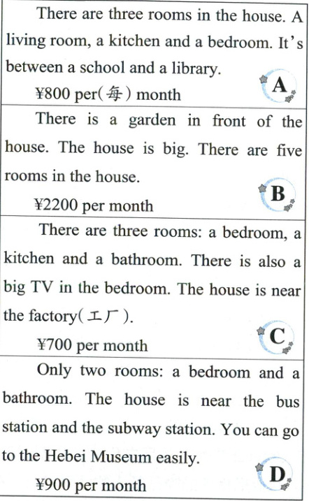 八、(石家庄市期中)下面是一则房屋广告,请仔细阅读,为房屋找到合适的租客,将序号写在相应的括号内。
