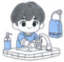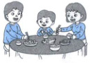 三、1.They are having dinner. 2.John is washing his hands. 3.Lily is washing the dishes.