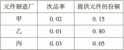 12. 某电子设备制造厂所用的元件是由甲、乙、丙三家元件制造厂提供的,根据以往的记录有如下数据. 设这三家工厂的产品在仓库中是均匀混合的且不区别标志.