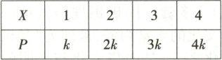 9.0.7[提示:由题意可得$k+2k+3k+4k=1$,解得$k=0.1$,所以$P(X\geq3)=P(X=3)+P(X=4)=0.3+0.4=0.7$.]