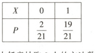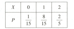 11.解:由题意知$X$服从两点分布,且$P(X=0)=\frac{C_5^2}{C_{15}^2}=\frac{2}{21}$,$P(X=1)=1-P(X=0)=\frac{19}{21}$.所以$X$的分布列为: