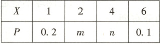 9.ABD[提示:对于A,由分布列的性质,可得$0.2+m+n+0.1=1$,解得$m+n=0.7$,故A正确;对于B,若$m=0.3$,可得$n=0.4$,所以$P(X>3)=P(X=4)+P(X=6)=0.5$,故B正确;对于C,由概率的定义知$m\geq0,n\geq0$,故C不正确;对于D,因为$P(X=1)=0.2$,$P(X=6)=0.1$,所以$P(X=1)=2P(X=6)$,故D正确.]