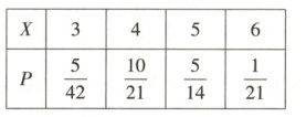 2.解:由题意,$X$所有可能的取值为3,4,5,6,且$P(X=3)=\frac{C_5^3}{C_9^3}=\frac{5}{42}$,$P(X=4)=\frac{C_4^1C_5^2}{C_9^3}=\frac{10}{21}$,$P(X=5)=\frac{C_4^2C_5^1}{C_9^3}=\frac{5}{14}$,$P(X=6)=\frac{C_4^3}{C_9^3}=\frac{1}{21}$.所以$X$的分布列为: