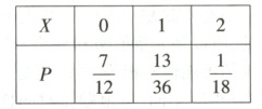 故$E(X)=0 × \frac{7}{12}+1 × \frac{13}{36}+2 × \frac{1}{18}=\frac{17}{36}$.