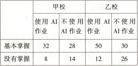 10.【题型二、三】某从事智能教育技术研发的科技公司开发了一个“AI 作业”项目,并且在甲、乙两所学校的高一学生中做用户测试。经过一个阶段的试用,为了解“AI 作业”对学生学习的促进情况,该公司随机抽取了 200 名学生,对他们“向量数量积”知识点掌握情况进行调查,样本调查结果如下表: