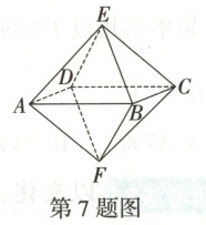 7. (2025·江苏南通一中高二下期末)六氟化硫在常压下是一种无色、无臭、无毒、不燃的稳定气体,有良好的绝缘性,在电器工业方面具有广泛用途.已知六氟化硫分子构型呈正八面体(每个面都是正三角形),如图所示,任取正八面体的两条棱,在第一条棱取自四边形$ABCD$的一条边的条件下,再取第二条棱,则取出的两条棱所在的直线是异面直线的概率为
