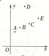 2. 如图,有5组$(x,y)$数据,去掉其中一组数据之后,剩下的4组数据具有线性相关关系,去掉的这组数据是(