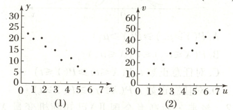 4. 对变量$x,y$有观测数据$(x_{i},y_{i})(i = 1,2,·s,10)$,得散点图如图(1)所示;对变量$u,v$有观测数据$(u_{i},v_{i})(i = 1,2,·s,10)$,得散点图如图(2)所示。由这两个散点图可以判断(