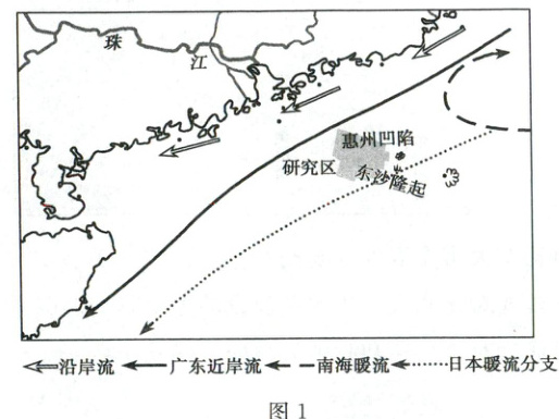(1)根据材料可知,惠州地区古水流流向为西南方向,与冬季风控制下的广东沿岸流方向一致,故惠州地区冬季风势力强于夏季风。