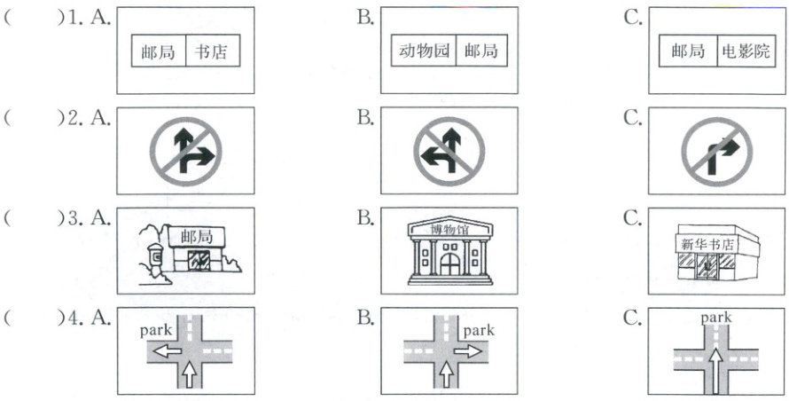 )4. A. police officer B. police station C. post office(