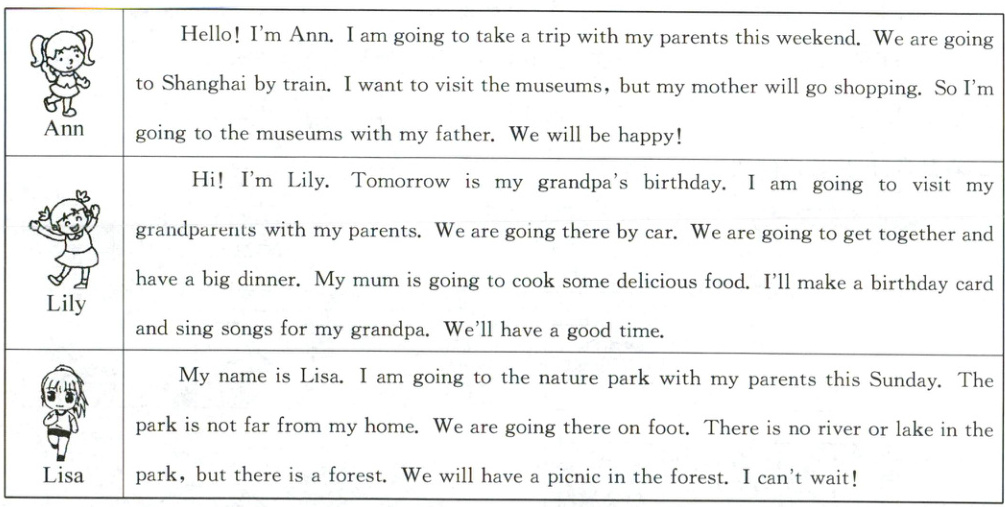 together. Lisa is going to the nature park with her parents. They are going to have a picnic. The children will have a 4.good/great/happy