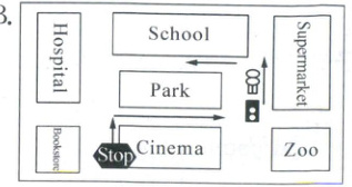 五、听录音,将短文补充完整(每空一词),并选择正确的路线指示图。(10分)
