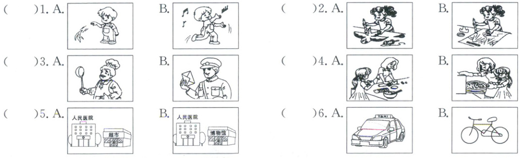 三、听句子或对话,选择合适的图片。(10分)