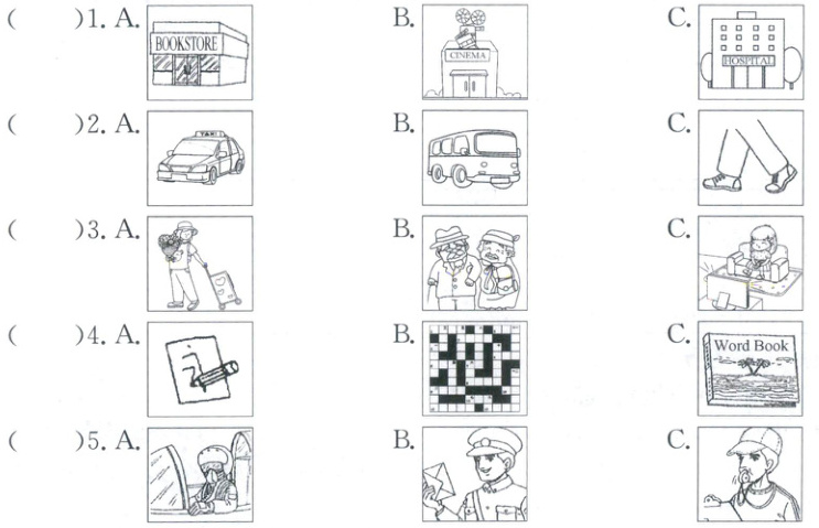 一、听录音,选出与你所听内容相符的图片。(5分)
