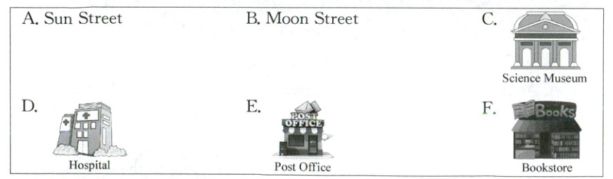 Now you are at school. The science museum is on Sun Street, too. Go straight and turn left at the library. Then turn right at the park. The science museum is behind the park.