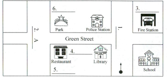 Now you are at school. Go straight and turn left at the library. The post office is between the restaurant and the library.