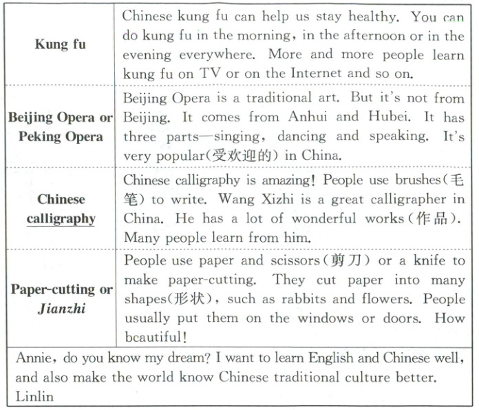 (二)Annie 想了解更多的中国传统文化,你给她介绍一下吧。阅读短文,根据短文内容选出正确的答案。(10分)