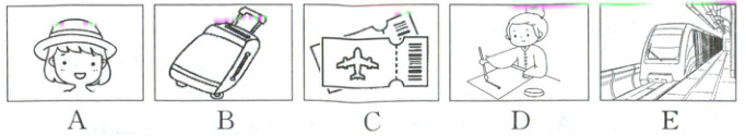 八、Annie 想与你见面,要亲身感受一下中国文化,看看她发来的消息吧。读句子,先选择图片,将代表该图片的序号填在括号里,再根据首字母提示在横线上写出单词的正确形式,每空限填一词。(10分)