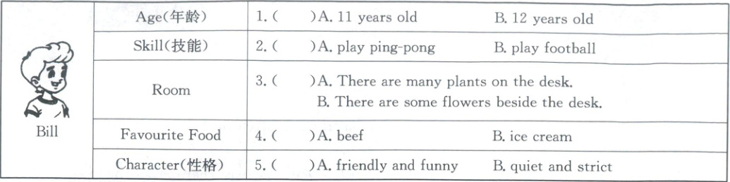 五、听录音,选出正确答案,补全 Bill 的信息表。(5分)