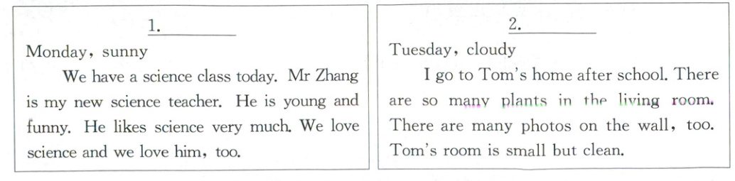 (一)请给每篇日记选择一个恰当的标题,写在日记上面的横线上。(4分)
