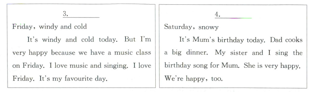 )8. Tony and his sister sing the birthday song for their mum.(三)根据日记内容回答问题。(4分)