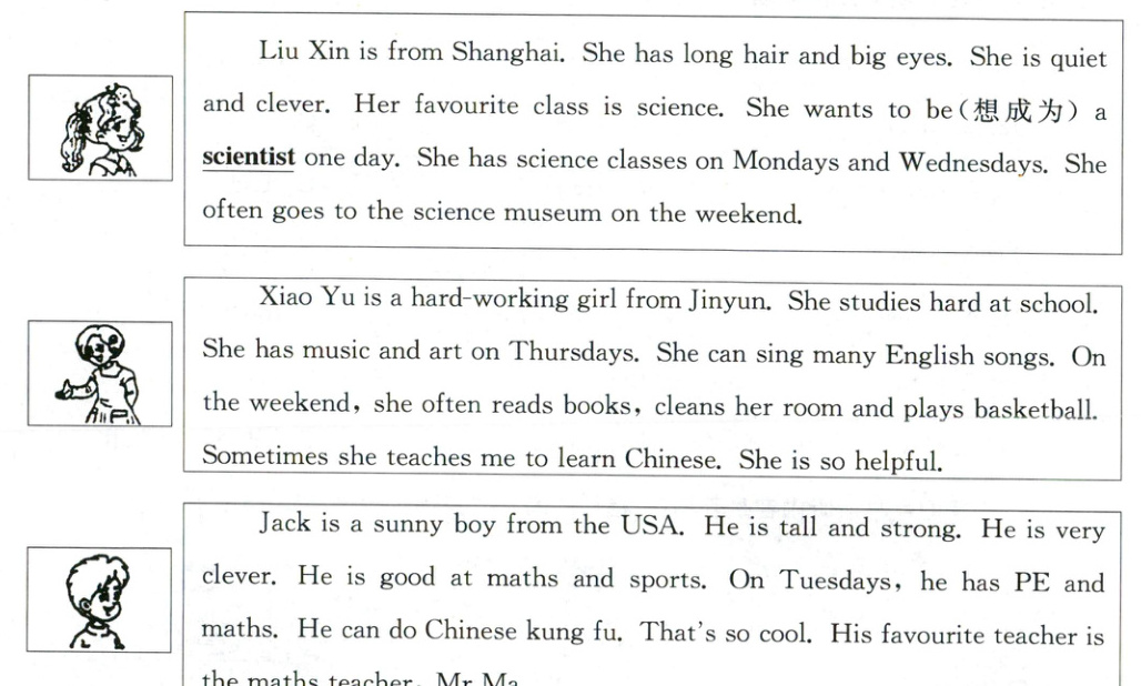 )1. The underlined word(画线词) “scientist” means ______ in Chinese.A. 画家 B. 科学家 C. 警察
