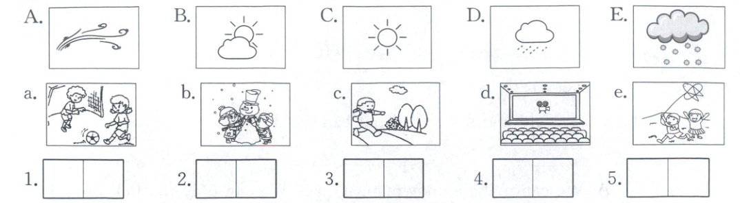 五、听录音,选择对应的天气和活动,注意字母大小写哦。(10 分)