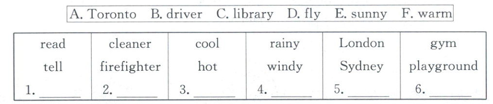 A. 理解词汇意思,选出与它们同类的词汇。(6 分)