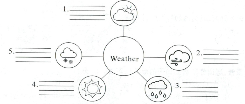 (一)1. cloudy 2. windy 3. rainy 4. sunny 5. snowy (二)6. Sydney 7. cook 8. nurse 9. hair 10. swim 11. speak